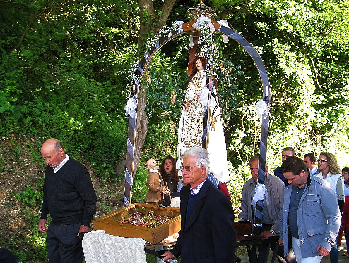 Title given to the Blessed Virgin Mary who appeared in an apparition on 26 May 1432 in the countryside outside Caravaggio, Lombardy, Italy. Giannetta de’ Vacchi Varoli was cutting hay in a field when the Virgin appeared. Mary requested penance from and a chapel built by the locals. A new spring of healing water appeared in the hay field. The apparition anniversary became a day of pilgrimage to the Shrine of Santa Maria del Fonte built at the site and devotion to the Madonna of Caravaggio spread through the region and eventually around the world. In 1879, Italians from Lombardy built a chapel for their settlement in southern Brazil. As it was the only sacred art that any of them possessed, they dedicated the Chapel to the Madonna di Caravaggio. Today the shrine hosts over a million pilgrims annually. Patronage – Diocese of Cremona, Italy.