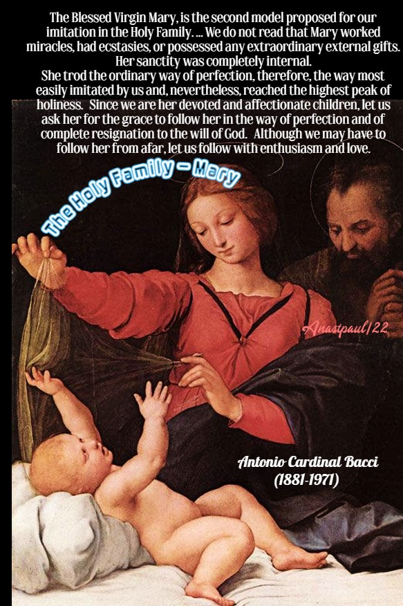 +2. We may also piously believe, his Divine Son was made like to him in outward form. In the natural order, Jesus would not be made after the likeness of His holy Mother alone. The Holy Ghost, in fashioning the features of the Son of God, would have taken St Joseph as in some sort, the model to be followed in form and face. What must have been St Joseph’s beauty, sweetness of expression, symmetry of form, perfect purity of body and soul!