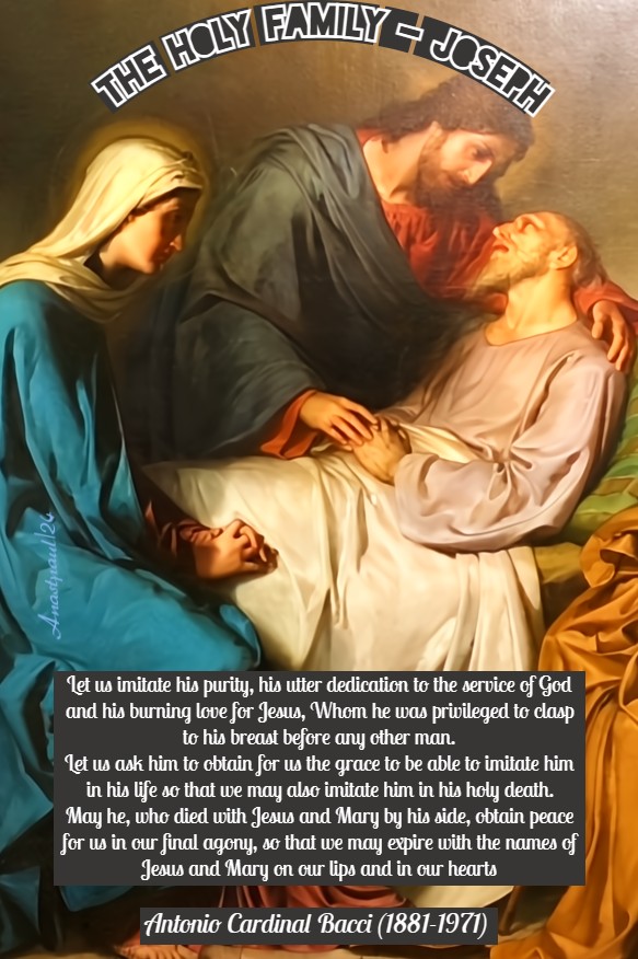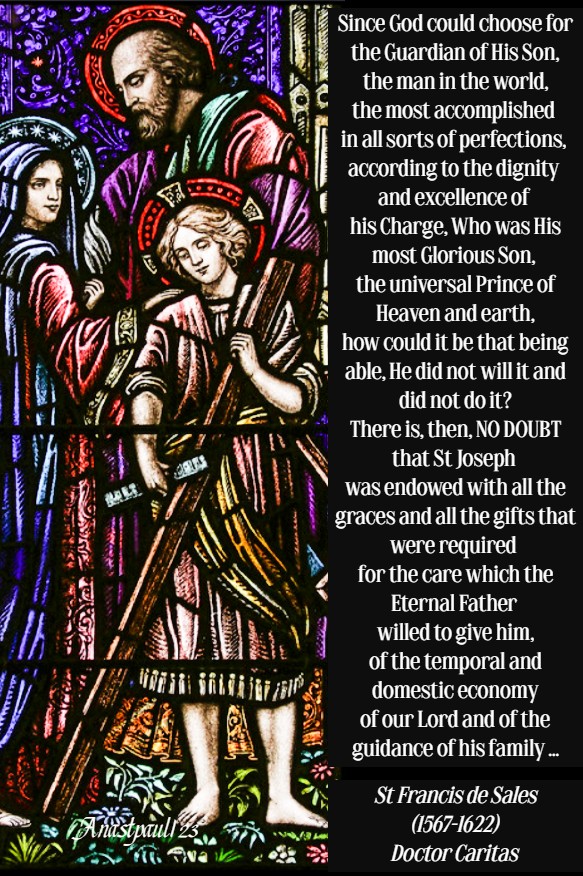 +3. When God calls a man by any name, He, thereby, ascribes to him whatever that name implies. How often Jesus called St Joseph by the endearing name of father! By so doing, He showed that He was truly His father. His Words were no mere fiction. O happy St Joseph! it is no wonder thou hast such power in Heaven!