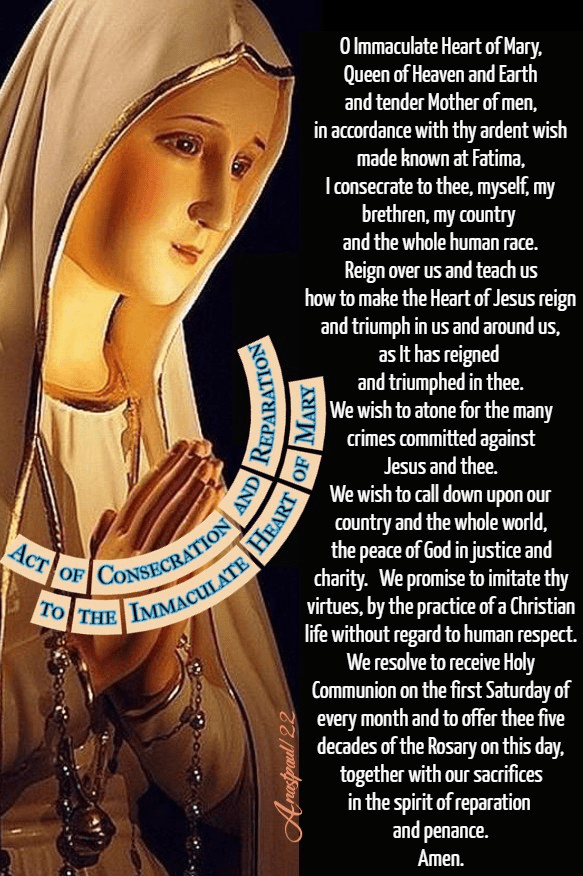 Let us beseech our heavenly Mother to be by our side at that final moment to sustain us in the conflict and to consign our souls to her divine Son, Jesus. Amen.”