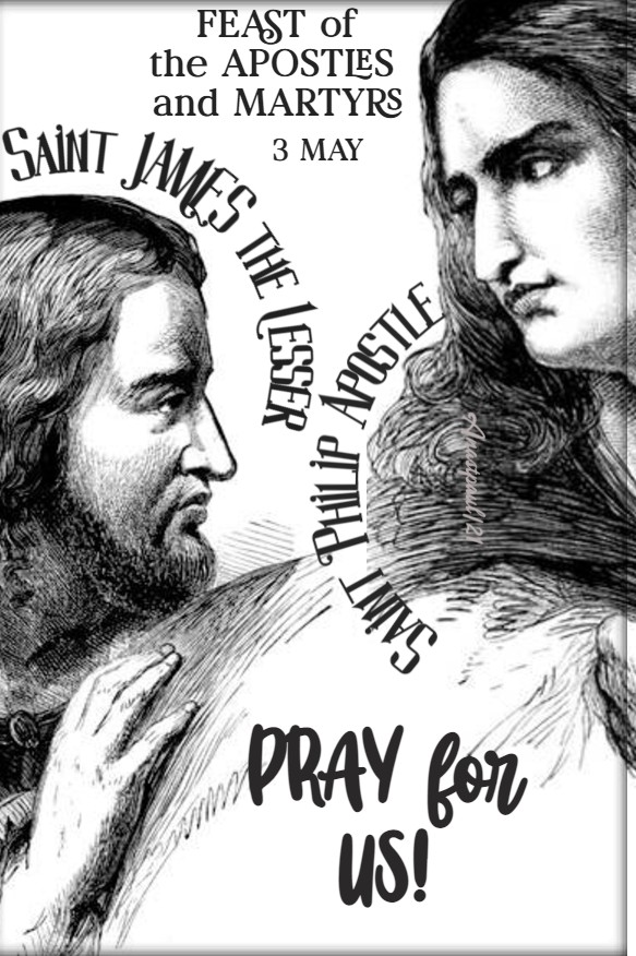 PRAYER – Lord God, each year You grant us the blessing of celebrating with joy, the feast day of Your Apostles and Martyrs Saints Philip and James. Make us partners with them by their prayers, in the Passion and Resurrection of Your only-begotten Son, so that we may come, with them, to the eternal vision of Your glory. We make our prayer through Jesus Christ, our Lord in the unity of the Holy Spirit, one God now and forever, amen.