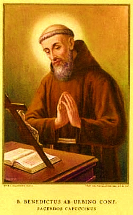 Marco was born into the noble family of the Passioneis in the duchy of Urbino. He was baptised Marco in 1560. He was orphaned by the age of seven and was put into the care of tutors with his ten brothers and sisters. He received the Doctor of Law at the University of Perugia and then rejoined his family, now living at Fossombrone. He made friends with the Capuchin brother questors and was attracted by their charism. Because of his poor health this was opposed by the local superior but, after waiting a year, the newly elected Provincial allowed him to join in 1584. Named Benedict he soon found his place among the preachers and joined St Lawrence of Brindisi in his missionary work in Bohemia. He thrived on it especially when preaching to the poor. He died in Fossombrone in 1625 and was Beatified by Blessed Pius IX on 15 January 1867.