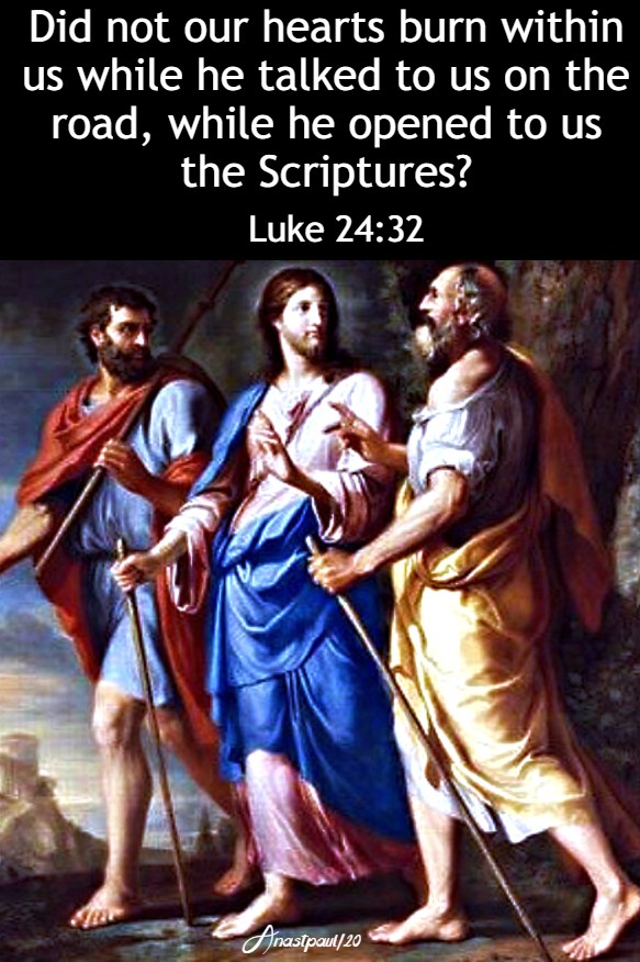 “And they said one to the other: ‘Was not our hearts burning within us, whilst he spoke in this way and opened to us the scriptures?’” – Luke 24:32