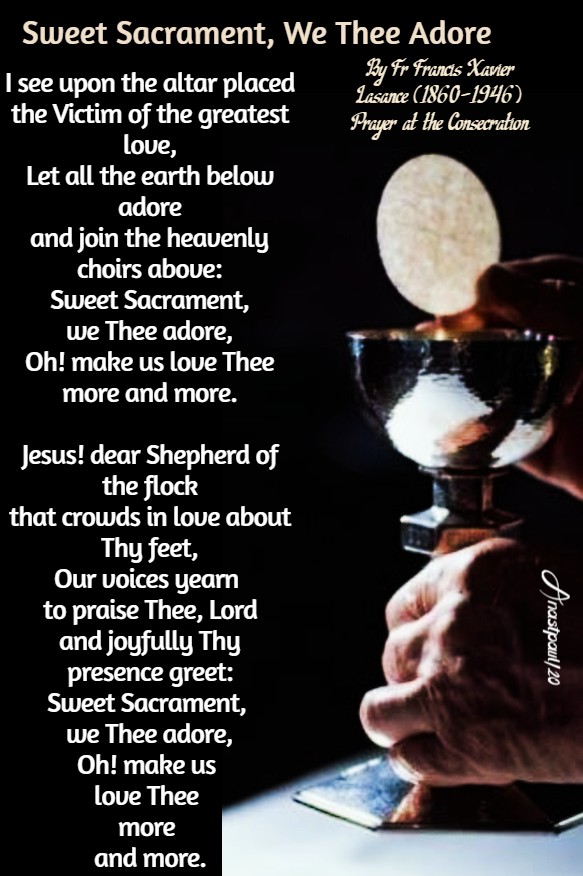 Sweet Sacrament, We Thee Adore By Fr Francis Xavier Lasance (1860-1946) Prayer at the Consecration