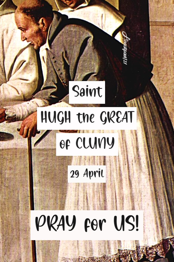 PRAYER – Lord God, stand by us in Your saving work and stay with us in Your gifts of grace. You have rescued us from the darkness, keep us ever in Your light. May the ways of truth and life which Jesus Christ Your Son taught us, be our anchor and our light. We ask that You hear the intercession of Mary, the Blessed Virgin Mother and Saint Hugh of Cluny, Your servant, whom we beseech for help as we work to reach our heavenly home. Through Christ our Lord, with the Holy Spirit, God forever, amen