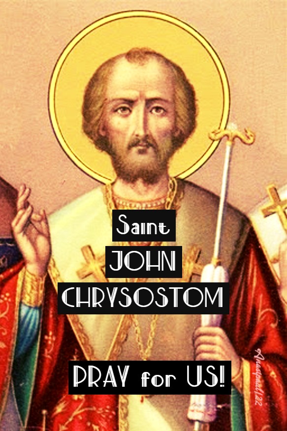 PRAYER – Lord God, strength of those who hope in You, by Your will, Saint John Chrysostom became renowned in the Church for his astonishing eloquence and his forbearance in persecution. Grant that we may be enriched by his teachings and encouraged by the example of his unconquerable fortitude. We make our prayer through our Lord and Saviour, Your only-begotten Son, Jesus Christ in the unity of the Holy Spirit, God now and forever, amen.