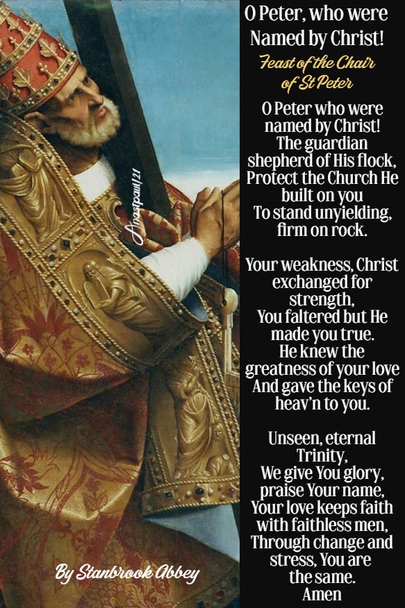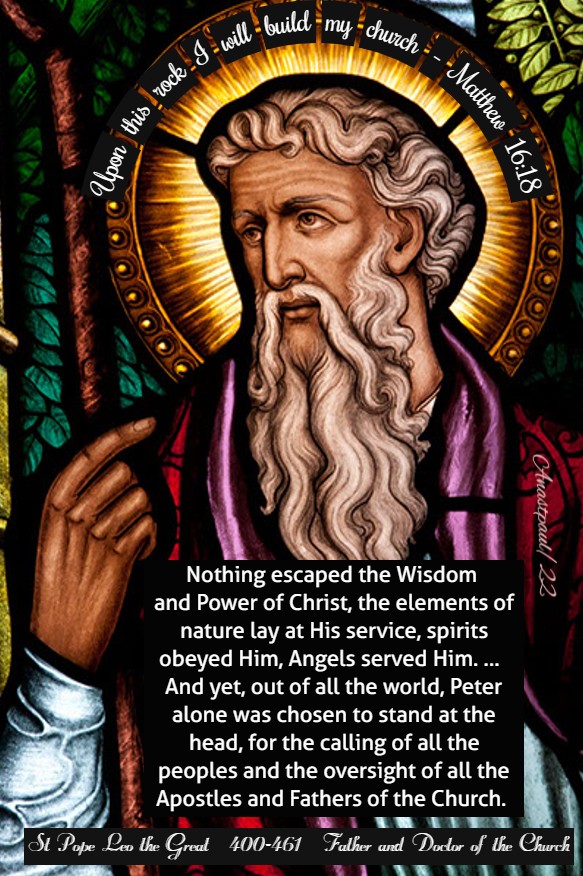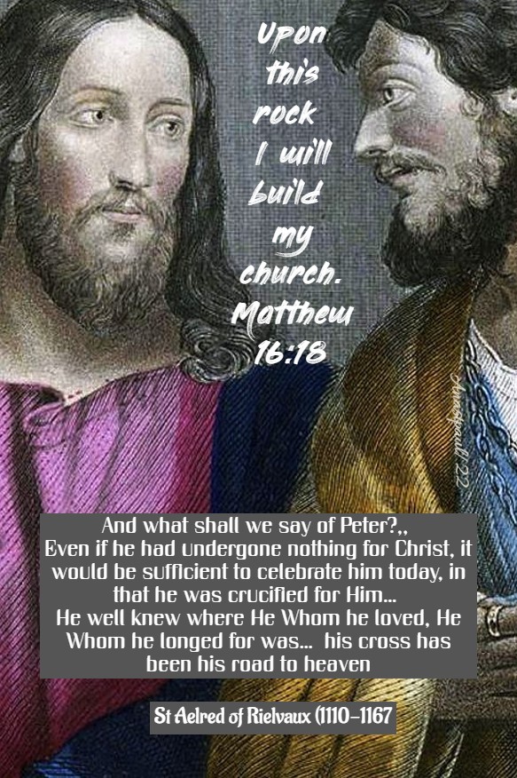 REFLECTION – “Thou art Peter and upon this rock I shall build My Church.” He was given this name of ‘Peter’ because he was the first to set the foundations of the faith among the nations and because, he is the indestructible rock on which rests the judgement seat and the whole edifice, belonging to Christ Jesus. It was on account of his faithfulness that he was called Peter, whereas our Lord receives the same name on account of his power according to Saint Paul’s words: “They drank from a spiritual rock which followed them and that rock ,was the Christ” (1 Cor 10:4). Yes, the Apostle chosen to be his co-worker merited to share the same Name as Christ. They built the same building together – Peter does the planting, the Lord gives the increase and it is the Lord, too, Who sends those who will do the watering (cf 1 Cor 3:6).