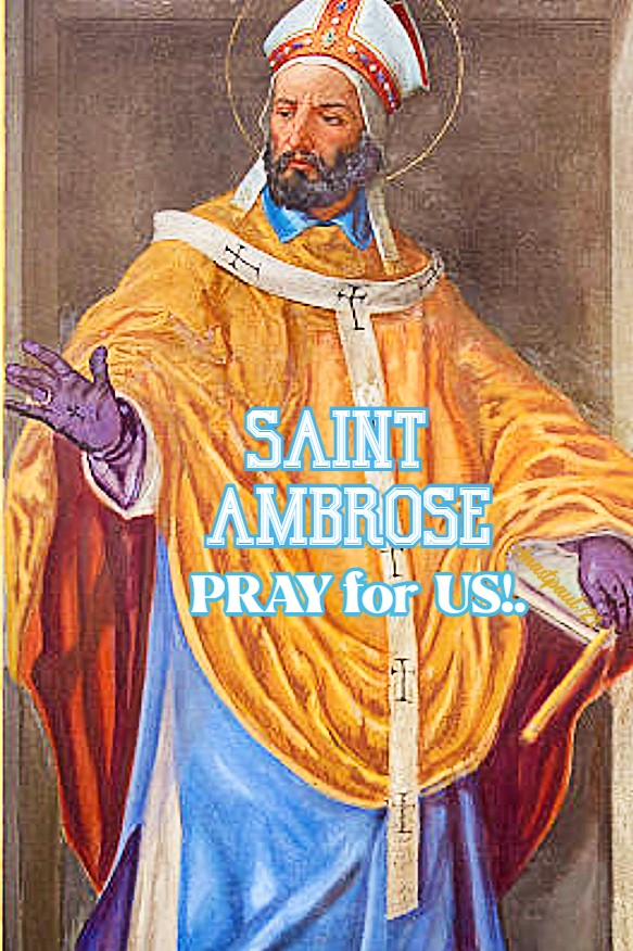 PRAYER – Lord God, You made St Ambrose a teacher of the Catholic Faith and a pattern of apostolic fortitude. Raise up in the Church today, men after Your own heart, to lead Your people with wisdom, strength and courage in the face of widespread evil. And may his prayers intercede for us all. We make our prayer, through our Lord Jesus Christ, Your Son in the unity of the Holy Spirit, one God forever and ever, amen.