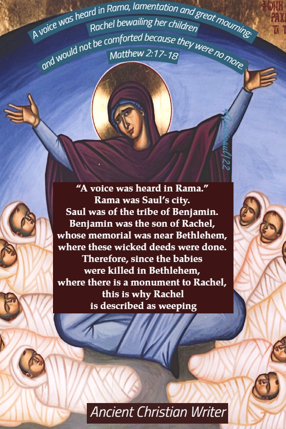 REFLECTION – “Where does this jealousy lead?… The crime committed today shows us. Fear of a rival to his earthly kingdom fills Herod with anxiety, he plots to suppress “the newborn King” (Mt 2:2), the Eternal King; he fights against his Creator and puts innocent children to death … As for those children, what fault had they committed? Their tongues were dumb, their eyes had seen nothing, their ears heard nothing, their hands done nothing. They accepted death who had not known life! … Christ reads the future and knows the secrets of the heart, He weighs our thoughts and probes our intentions (cf. Ps 138[139]): why did He forsake them? … Why did the newborn heavenly King abandon these companions in innocence, forget the sentinels watching around His crib, to such an extent that the foe, who wanted to get at the King, ravaged His whole army?
