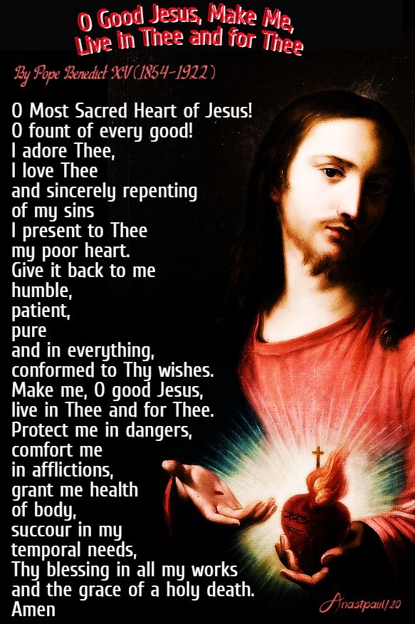 O Lord Jesus Christ, Who hast poured forth the riches of Thy love for men in instituting the Sacrament of the Eucharist, help us, we beseech Thee, to love Thy most loving Heart and ever to make worthy use of so great a Sacrament. Who livest and reignest …. Collect of the Mass of the Feast of the Eucharistic Heart of Jesus