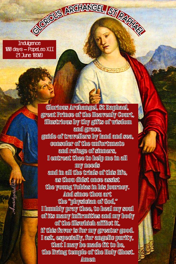 Glorious Archangel, St Raphael Indulgenced Prayer (100 days – Pope Leo XII 21 June 1890)