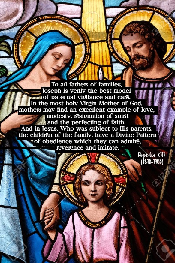 “To all fathers of families, Joseph is verily the best model of paternal vigilance and care. In the most holy Virgin Mother of God, mothers may find an excellent example of love, modesty, resignation of spirit and the perfecting of faith. And in Jesus, Who was subject to His parents, the children of the family, have a Divine Pattern of obedience which they can admire, reverence and imitate.”