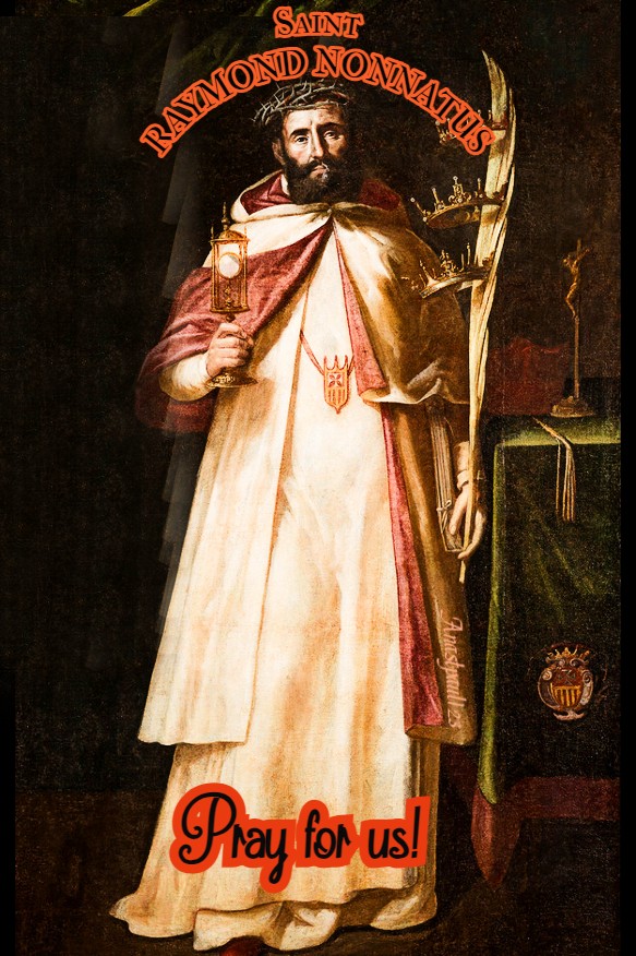 PRAYER – O God, Who made blessed Raymund, Thy Confessor, famous for delivering Thy faithful from the captivity of the infidels, grant us, by his intercession that, having been released from the bonds of our sins, we may with free minds, do what is pleasing to Thee. Through Jesus Christ, Thy Son our Lord, Who lives and reigns with Thee, in the unity of the Holy Ghost, God, world without end. Amen (Collect).