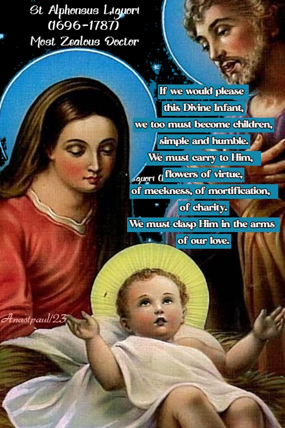 “If we would please this Divine Infant, we too must become children, simple and humble. We must carry to Him, flowers of virtue, of meekness, of mortification, of charity. We must clasp Him in the arms of our love.”