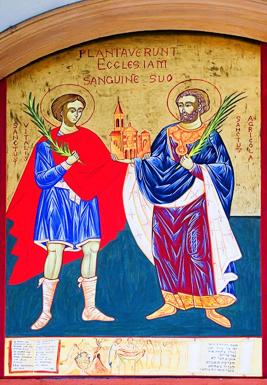 St Vitalis (Died c 304) Martyr and St Agricola (Died c 304) Latmen Martyrs. Martyrs, Laymen. They died in c 304 in Bologna, Italy in the persecution of Diocletian. Patronage – Bologna. The Roman Martyrology reads: “In Bologna, Saints Vitalis and Agricola, Martyrs, of whom, according to what Saint Ambrose recounts, the first was first a slave to the other, then a companion in Martyrdom: Vitalis, in fact, suffered such torments that there was no longer any part of his body without wound. Agricola, not at all terrified by the torture of his slave, imitated him in Martyrdom by undergoing crucifixion.” Their Lives and Deaths: https://anastpaul.com/2022/11/04/saints-of-the-day-4-november-st-vitalis-died-c-304-and-st-agricola-died-c-304-martyrs/
