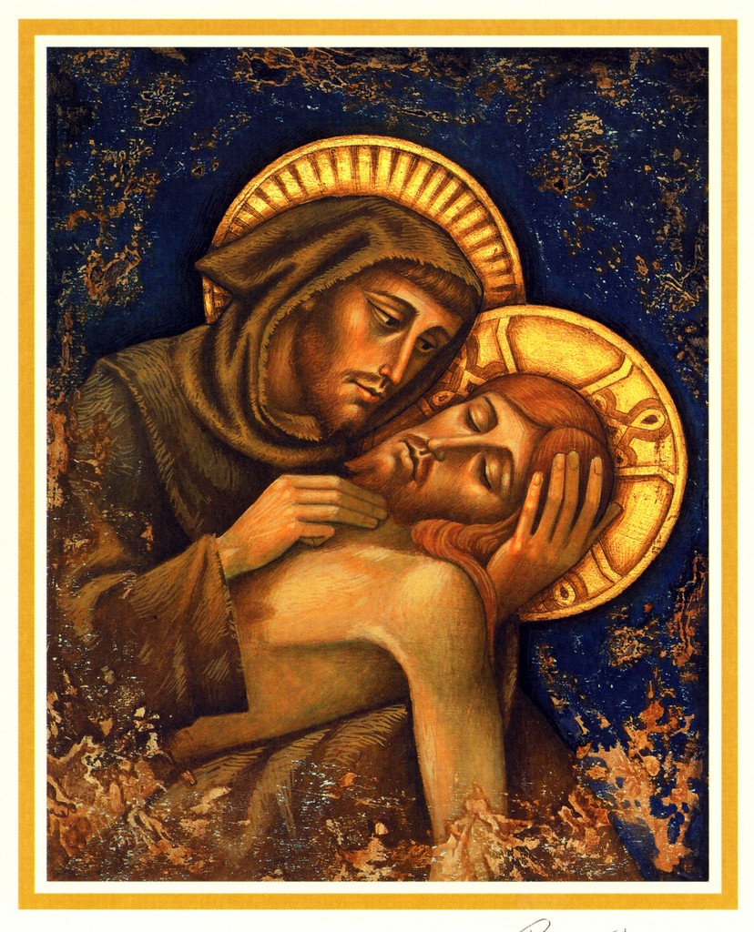 PRAYER – O Lord, Jesus Christ, Who, to inflame our hearts with the fire of Thy love, when the world was becoming cold in spirit, renewed in the flesh of most blessed Francis, the sacred marks of Thine own Passion, graciously grant that by his merits and prayers, we may steadfastly carry our cross and bring forth worthy fruits of penance. Through the same Jesus Christ, Thy Son our Lord, Who lives and reigns with Thee, in the unity of the Holy Ghost, God, world without end. Amen (Collect).