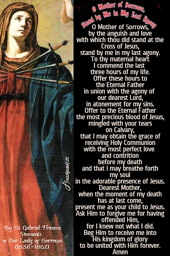 O Mother of Sorrows, Stand by Me in My Last Agony By St Gabriel Francis Possenti of Our Lady of Sorrows (1838-1862)