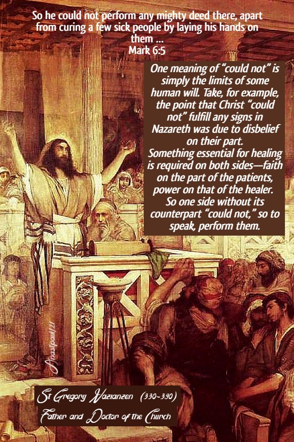 REFLECTION – “One meaning of “could not” is simply the limits of some human will. Take, for example, the point ,that Christ “could not” fulfill any signs in Nazareth was due to disbelief on their part.