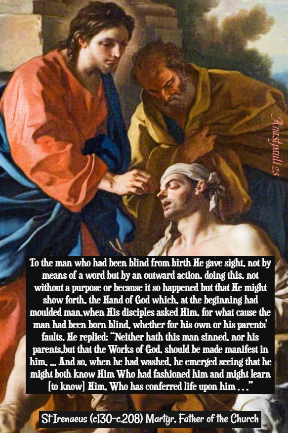 As the human race was subjected to death through the act of a Virgin, so was it saved by a Virgin, was precisely balanced by the obedience of Another. Then indeed, the sin of the first formed man was amended by the chastisement of the First Begotten, the wisdom of the serpent was conquered by the simplicity of the Dove and the chains were broken, by which we were in bondage to death.” – St Irenaeus (130-202) Bishop of Lyons, Martyr, Father of the Church (Against Heresies, 5)