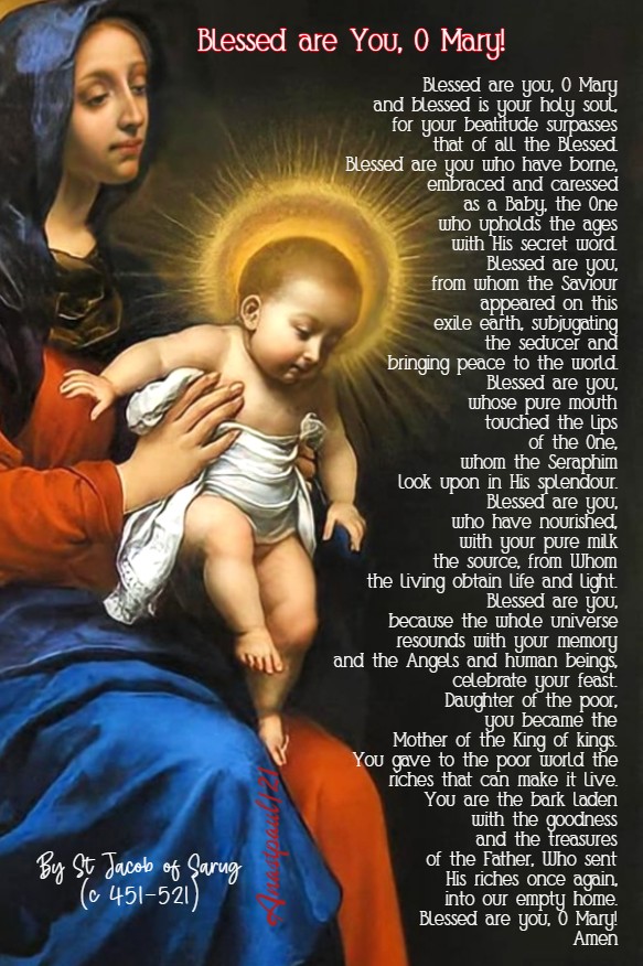 “Come, then, behold our Lord, He has come into the world from His Father’s side, He has emptied Himself so as to complete His course in humility (Phil 2:7) (…). He saw the Gentiles like a parched flock whose spring of life was closed by sin as by a stone. He saw the Church like Rachel and so He ran towards her and removed the heavy sin as though it were a rock. He has opened up the baptistery for His bride to bathe in, He has drawn water and refreshed the nations of earth as if they were His sheep. With His almighty power, He has removed the heavy burden of sin, He has uncovered the spring of sweet water for the whole world.”