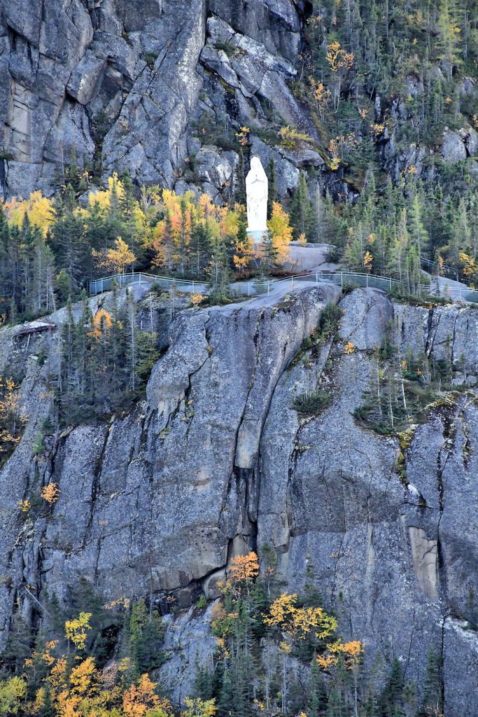 The finished Statue is an impressive more than 10,5 metres high and weighs 3 tons. Sculpted of solid white pine, it was then sheathed in lead to protect it from the harsh weather. Hauling such a huge Statue into place was a difficult task in the late nineteenth century. After being constructed, it was broken down into 14 separate pieces and then hoisted into place and rebuilt. The Statue made Louis Jobin the most famous sculptor of the time,and it has become a regional landmark, with visitors from all over the world assembling at her feet to sing the Ave Maria.