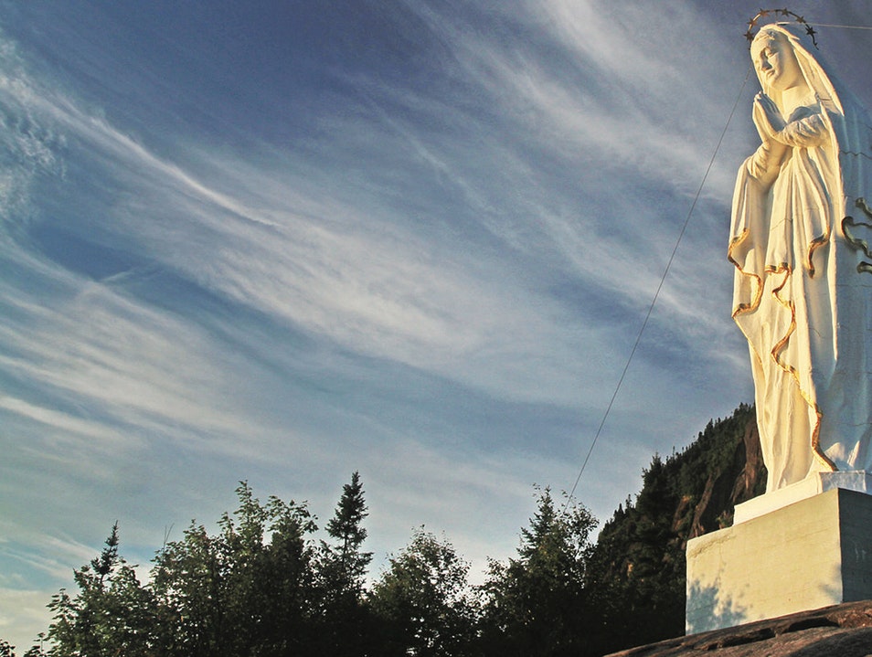 The Saguenay Fjord is an ancient glacial valley that has been overrun with sea water. In the year 1828 a surveyor, Joseph Bouchette, ventured into the region for the purpose of collecting data for topographical maps. It was during this expedition that he found a suitable site for a future village, which Pascal Dumais and his family later settled. This marked the founding of the village of Lac-Bouchette, with more and more people coming to settle in the area until the village had 300 inhabitants by 1888. Our story actually begins with a man named Charles Napoleon Robitaille, a salesman who travelled the roads in and around Quebec. During the winters he would have to cross frozen rivers and it was in the winter of 1878 while trying to cross the Saguenay River that the ice broke under the weight of his horse and sleigh. Pulled beneath the surface of the icy waters, Charles was alone and completely helpless. Knowing he was dying, he implored the Blessed Virgin Mary to save him. Charles miraculously survived, and managed to escape from the river with his life. He knew the Virgin had assisted him and so to honour Mary and her recent apparition at Lourdes, he asked Louis Jobin to create a huge Statue of the Blessed Virgin sculpted in the image of Our Lady of Lourdes, the Immaculate Conception. He envisioned the Statue in the heights overlooking the mouth of the river. The Statue Jobin sculpted became known as Notre-Dame du Saguenay.