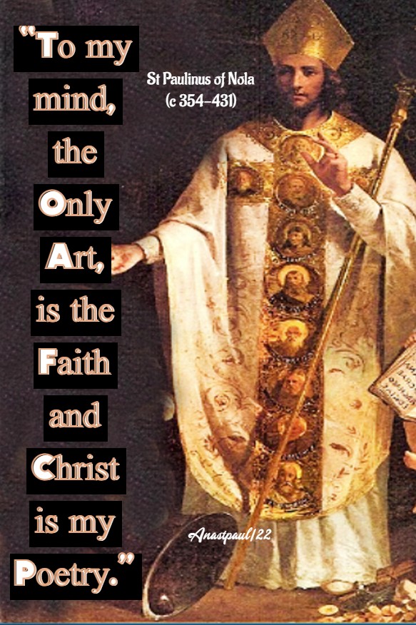 About St Paulinus:   https://anastpaul.com/2018/06/22/saint-of-the-day-22-june-st-paulinus-of-nola-c-354-431/
