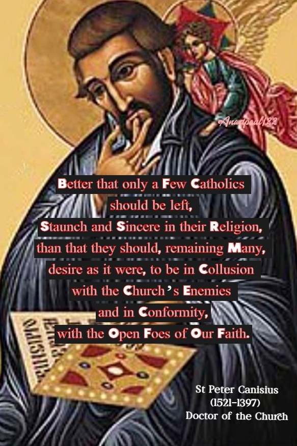 Such should be the shepherd in the Church who, like Paul, becomes all things to all men, so that the sick may find healing in him; the sad, joy; the desperate, hope; the ignorant, instruction; those in doubt, advice; the penitent, forgiveness and comfort and finally, everyone, whatever is necessary for salvation. And so Christ, when He wished to appoint the chief teachers of the world and of the Church, did not limit Himself to saying to His disciples: You are the light of the world but also added these words: A city seated on a mountain cannot be hid. Neither do men light a candle and put it under a measure but upon a candlestick, that it may shine to all who are in the house. Those churchmen err, who imagine that it is by brilliant preaching, rather than by holiness of life and all-embracing love, they fulfil their office.” – St Peter Canisius SJ (1521-1597) Doctor of the Church (Sermon excerpt).