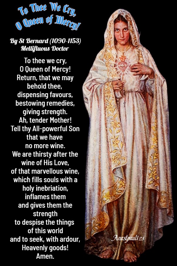 Do not permit your will to be broken, do not yield to pusillanimity; you have, in the meantime “the first-fruits of the Spirit” (2 Cor 1:22) which, even now, you may reap with joy. Sow for yourselves righteousness and reap the hope of life. These words do not postpone your triumph until the last day, when the object of your desire will be possessed, not hoped for; they refer to the time now, at your disposal. But when eternal life does come, what great gladness there will be, what joy beyond imagining! And can the hope of this great happiness be without happiness, even now?!” – St Bernard (1090-1153) Father and Mellifluous Doctor of the Church (Sermons on the Song of Songs No 37).