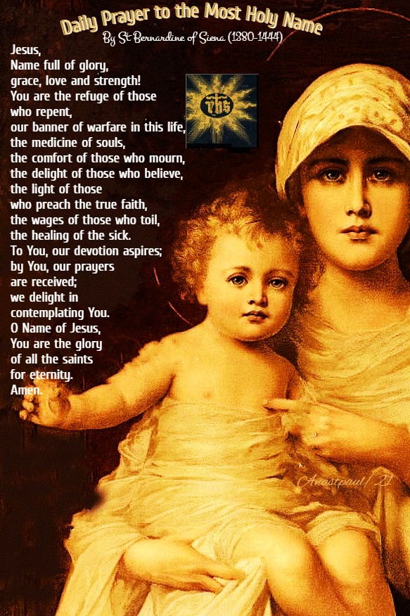 Remember us, Saint Joseph and plead for us to your Foster-Child. Ask your most holy bride, the Virgin Mary, to look kindly upon us, since she is the Mother of Him, Who, with the Father and the Holy Ghost, lives and reigns eternally. Amen.” – St Bernardine of Siena (1380-1444) (An excerpt on his Sermon 2 of St Joseph).
