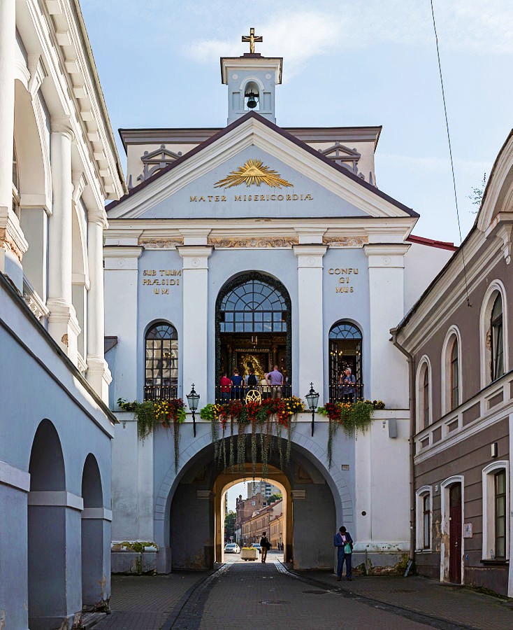 In 1702, when Vilnius was captured by the Swedish army during the Great Northern War, Our Lady of the Gate of Dawn came to her people’s rescue. At dawn, the heavy iron of the Gate collapsed, crushing and killing four Swedish soldiers. After this, the Polish-Lithuanian Commonwealth Army successfully counter-attacked near the gate. In the following centuries, the cult grew and Our Lady became an important part of religious life in Vilnius. This inspired many copies in Lithuania, Poland and diaspora communities worldwide. On 5 July 1927, the image was canonically crowned as Mother of Mercy. It is a major site of pilgrimage in Vilnius and attracts many visitors, especially from Poland.