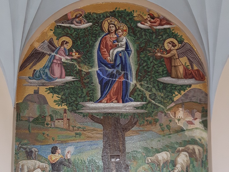 Dominico was not alone in this experience. A devout woman named Bartolomea often walked past the oak tree and stopped each time to pray to the Blessed Virgin. One day she also decided to take the tile to her home. After saying her evening prayers, Bartolomea went to bed but woke up in the morning to find the image missing. She at first thought that her family had taken it to place it somewhere else but upon learning that this was not so, she ran to the oak tree and saw what she had already guessed – the tile had miraculously returned to its place amid the tendrils of the vine.
