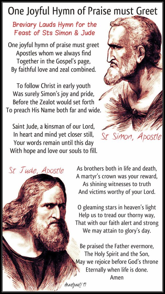 One Joyful Hymn of Praise must Greet Morning Hymn On the Feast of Sts Simon and Jude From the Breviary The Benedictines of Saint Cecilia’s Abbey, Ryde, UK