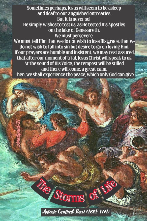 Like the Apostles on the lake of Genesareth, when their frail boat was battered by the storm tossed waves and was in danger of being wrecked, let us cry out with the same faith and confidence, when we are assaulted by the devil: “Lord save us! We are perishing!” (Mt 8:25).