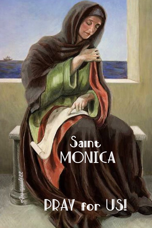 PRAYER – O God, the consoler of those who mourn and the safety of those who put their trust in You; Who mercifully accepted the holy tears of blessed Monica for the conversion of Augustine, her son; grant us through the intercession of both, to bewail our sins and to obtain the grace of Your forgiveness. Through Jesus Christ, Thy Son our Lord, Who lives and reigns with Thee, in the unity of the Holy Ghost, God, world without end. Amen (Collect).